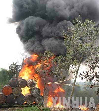 5月22日,記者在火災(zāi)現(xiàn)場發(fā)現(xiàn),這里堆放著130只油桶,油槽內(nèi)存有近10噸廢機(jī)油。當(dāng)日上午10時許,四川省眉山市東坡區(qū)復(fù)盛鄉(xiāng)中桂村的一地下煉油廠發(fā)生火災(zāi),消防人員經(jīng)過1個多小時的撲救才將大火撲滅。據(jù)了解,大火是由于一名工人操作不當(dāng)致使電線短路引起的。現(xiàn)場未發(fā)現(xiàn)人員傷亡。 |