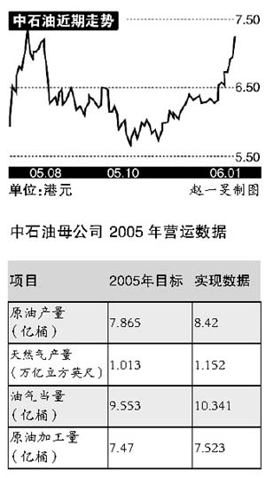 受惠于國際油格持續高漲,中石油去年全面超額完成各項生產經營指針,實現收入6720億元、稅費1410億元、利潤總額1756億元,較2004年度分別增長17.8%、30.8%及36.3%。去年該公司股票比2004年飆漲71%。