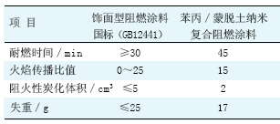 表 2 苯丙/蒙脫土納米復合阻燃涂料與飾面阻燃涂料國標的比較