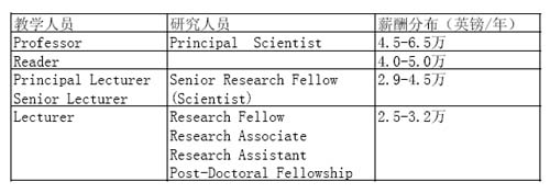 英國高校和所屬研究機構一般都有固定編制,因此能夠獲得固定職位并不是一件容易的事。在英國很少有博士畢業生能直接成為固定教師(Permanent staff),一般都要經歷一個或幾個合同期的Research Fellow工作,在領域內表現出色的才能通過競聘成為固定人員。