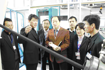 汪總向楊黎明所長介紹了JRLX/T碳纖維復合導線抗舞動、抗覆冰、重量輕、強度高、弧垂小、載流量大等優良性能以及在最近冰雪災害中該導線的出色表現,并介紹了采用CCV(懸鏈式)生產超高壓交聯電力電纜的工藝特點。楊黎明認真觀察了超高壓交聯電纜生產線,并進入TROESTER主控室,記錄了相關生產參數。楊所長一行還參觀了從瑞士HAEFELY公司進口的500kV XLPE電纜試驗與局放測量系統,對該系統的安裝調試提出了指導性的意見。