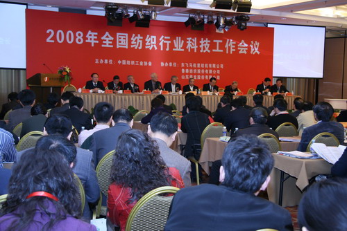 為加快行業(yè)科技發(fā)展,努力推進自主創(chuàng)新,促進紡織科技成果產(chǎn)業(yè)化轉(zhuǎn)變,2008年3月26日全國紡織行業(yè)科技工作會議在北京召開。中國紡織工業(yè)協(xié)會杜鈺洲會長出席會議并作紡織行業(yè)科技發(fā)展報告,中國紡織工業(yè)協(xié)會許坤元、楊東輝、高勇、徐文英、張延愷副會長,楊紀朝秘書長,以及中國工程院姚穆、梅自強、季國標院士等領(lǐng)導(dǎo)專家出席會議,中國紡織工業(yè)協(xié)會各行業(yè)分會領(lǐng)導(dǎo)和全國各地企業(yè)、高校代表及行業(yè)媒體近300人參加會議。會議由中國紡織工業(yè)協(xié)會副會長高勇和徐文英主持。