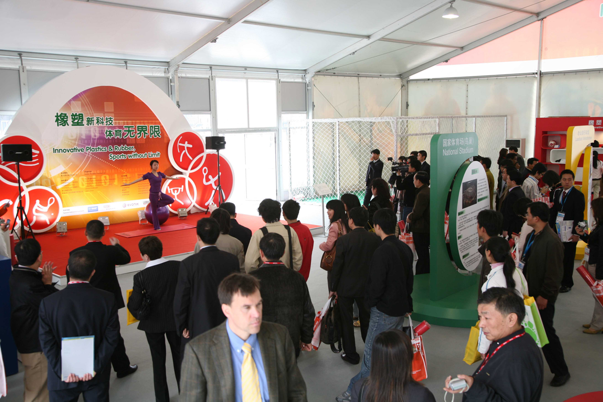 2008年4月17日 中國 上海「2008國際橡塑展」(Chinaplas 2008,第二十二屆中國國際塑料橡膠工業(yè)展覽會)于2008年4月17日-20日在上海新國際博覽中心盛大舉行。此次展會中的“橡塑與體育”館成為觀眾和媒體關(guān)注的焦點之一。本屆展會正逢2008北京奧運年舉行,為了使更多業(yè)界人士了解橡塑科技在奧運等體育領(lǐng)域的廣泛應(yīng)用,以及掌握更多有關(guān)體育產(chǎn)業(yè)及奧運的相關(guān)知識,展會的主辦方雅式展覽服務(wù)有限公司在展會期間特設(shè)了這個充分展示橡塑科技應(yīng)用魅力的展館。