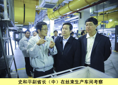 考察中,史和平詳細詢問了南纖四期擴建后形成的規模效益以及世界范圍內同行競爭力比較等情況,并在絲束車間了解了醋纖絲束的生產流程。南纖公司有關領導介紹了南纖堅持學習消化引進技術,通過自主創新,在工藝改進、節能減排等方面所取得的成績,史和平對此給予充分肯定。