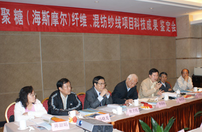 會議由山東省科技廳組織,泰安市科技局主持,經過鑒定委員會研究,由季國標院士擔任主任委員,由楊世濱理事長、杜予民教授、王善元教授擔任副主任委員。鑒定委員會認真聽取了項目組的工作報告、技術報告及用戶應用證明等情況匯報,對主要技術文件進行了認真審查和質疑,經過充分討論,對高性能純殼聚糖(海斯摩爾)纖維項目形成以下鑒定意見: