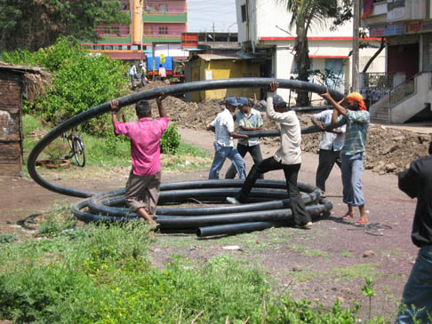與許多印度農(nóng)村一樣,Malkapur的供水系統(tǒng)時斷時續(xù)并且供水不足,以致當?shù)氐木用袢ス盟堫^前排幾個小時的長隊只為了分到有限的水。馬哈拉施特拉政府為改變現(xiàn)狀制定了一個政策,即通過低泄漏的管道系統(tǒng)以持續(xù)提供水資源。