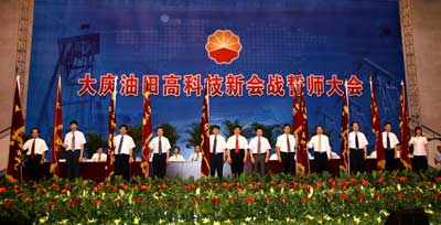 中石油集團(tuán)公司旗下的大慶油田提出未來(lái)10年內(nèi)持續(xù)穩(wěn)定年產(chǎn)量4000萬(wàn)噸的目標(biāo),在7月16日舉行的大慶油田高科技新會(huì)戰(zhàn)誓師大會(huì)上,大慶油田總經(jīng)理王玉普表示,在目前國(guó)際原油價(jià)格高企,我國(guó)對(duì)原油的進(jìn)口量大增的背景下,大慶油田決定依靠高科技,一定程度地緩解國(guó)內(nèi)原油供給緊張的局面。