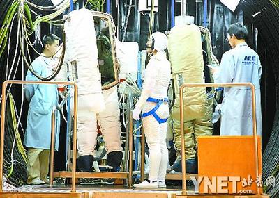 科研人員正在對艙外航天服進行模擬實驗■本版供圖/新華社