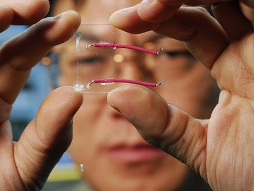 目前,科學家研制出一種透明材料,當對該材料進行彎曲或者擠壓時就會產生電流,這種效果將歸功于氧化鋅納米線植入該材料之中。醫學植入治療將受益很大,比如:未來可以設計一種由心臟跳動作為動力的起搏器,無需在起搏器上裝配電池。