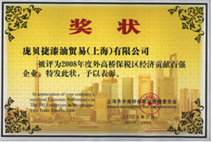 “2009年外高橋保稅區(qū)企業(yè)大會(huì)”在上海隆重召開,會(huì)上龐貝捷漆油貿(mào)易(上海)有限公司榮獲“2008年度外高橋保稅區(qū)經(jīng)濟(jì)貢獻(xiàn)百強(qiáng)企業(yè)”稱號。