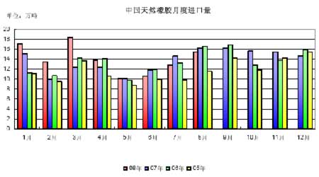 2008 年8 月,中國天膠進(jìn)口量15.43 萬噸,比上月增加19.94%,比去年同期減少5.04%,反映了目前國內(nèi)消費(fèi)的持續(xù)疲軟