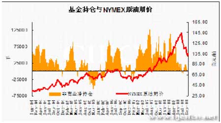 基金持倉與NYMEX原油價格走勢圖。(資料來源:CFTC 北京中期)