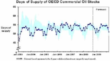 圖九:OECD國家商業原油可供供應天數及預期