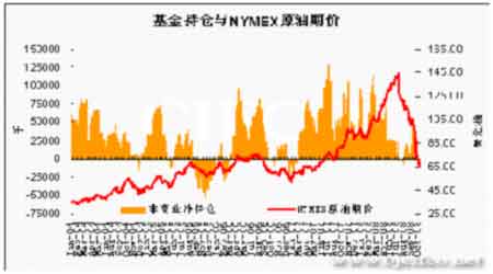 基金持倉與NYMEX原油價格走勢圖。(資料來源:CFTC 北京中期)