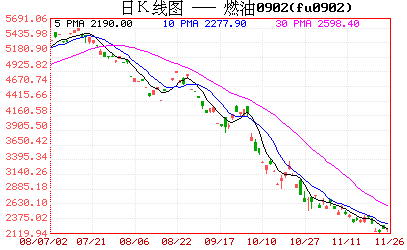本周國際原油價格延續跌勢,NYMEX原油指數跌5.20美元至53.73美元,一月合約跌破50美元,周收盤49.93美元,一周跌幅11.82%。滬油本周表現空前活躍,周二滬油成交量、持倉量均創上市以來最高紀錄,主力合約fu0902成交1155118手,盤終持倉232156手,日內增倉65566手,增倉量幾乎與以往主力合約持倉持平,之后兩個交易日連續增倉。滬油指數一周收盤較上周下跌188點,跌幅近8%,fu0902收于2145點,周四出現跌停,周五早盤至跌停板,接近尾盤在空頭獲利平倉壓力下小幅收高。