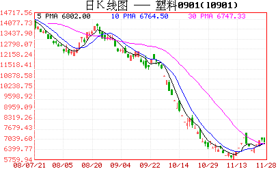 連塑自國慶節以后期現價格均出現大幅度下挫,下跌角度極為陡峭,但進入11月份以后價格下跌速率逐漸趨緩。由于近期原油價格持續下挫對連塑價格起到壓制作用,LLDPE也出現了罕見暴跌行情,價格不斷下滑嚴重擠壓石化生產商的利潤空間,近期國內各大石化生產商頻繁傳出減產、限產措施以抬高價格,連塑期貨價格一度出現出現大幅飚升,現貨價格在期貨強勢上漲帶動下也出現同步上揚,11月份國家相繼出臺4萬億擴大內需計劃以及國務院出臺提高商品出口退稅政策等利好消息也支撐連塑演繹一波次級反彈行情,但反彈是否能形成反轉有待觀察。
