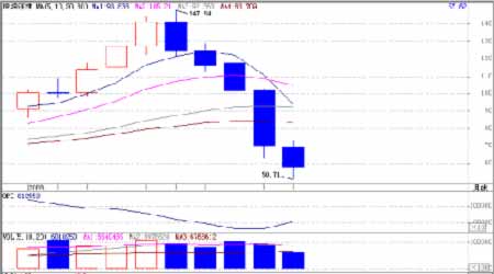由于金融危機的影響已經擴散到實體經濟,因此原油庫存持續上升且市場不斷調低原油的消費預期,致使原油價格弱勢不改,其主力合約一舉跌破50美元整數關口。然而,在全球央行聯合降息等相繼出臺的一系列刺激經濟措施及歐佩克宣布減產等因素起著一定的支撐作用,在一定程度上減緩了原油價格的下跌速度。原油連續月線圖最終收于下影線較長的陰柱,較上月持倉增加成交較少,意味著多空雙方看法分歧加大,資金對抗逐步升級。