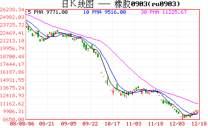 在過去8個交易日中,上期所天然橡膠期貨成交最活躍的0903合約價格有6個交易日保持上揚,累計升幅接近17%。截至昨天收盤時,該合約以漲停價報收于10125元/噸,自12月3日以來首次升破10000元/噸的整數關口。