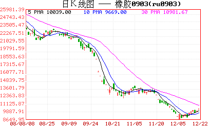 上周六,全球三大橡膠生產國達成協議,計劃降低明年橡膠出口量91.5萬噸,并且計劃在國際橡膠價格從目前位置反彈幅度低于25%之前禁止更多橡膠銷售。此外,本周泰國新任總理也表示政府將購入國內天膠以提振價格。這是繼前期東南亞三大主產國計劃明年減產21萬噸后,三大主產國再度推出的保價計劃。由于泰國、印尼和馬來西亞三國天膠產量占到全球天膠產量的70%以上,因此上述三國對2009年產量及出口的大幅減少勢必會改善由于消費快速下滑而帶來的過剩壓力。受此影響,亞洲各主要天膠市場本周均出現了大幅反彈,滬膠903合約也重新收復萬點大關,但由于滬膠持倉庫存比出現回落,短期持續反彈的動能已有所減弱,萬點一線的震蕩在所難免。
