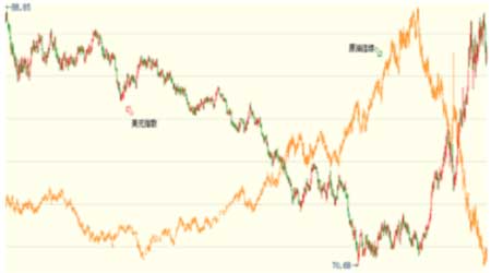 本月,美元指數(shù)大幅上揚(yáng),但數(shù)次上沖88關(guān)口無果,顯示在這一關(guān)口有重要阻力。由于市場恐慌情緒減退,將會直接導(dǎo)致美元中期走軟。作為反向指標(biāo),原油面臨中期反彈的可能性大。