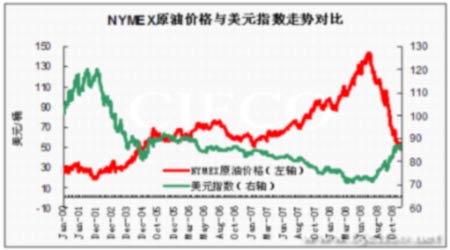 美元傳統(tǒng)上對(duì)國際大宗商品如石油或其他如黃金、基本金屬等的價(jià)格有著直接影響,因?yàn)檫@些商品都是以美元計(jì)價(jià),且通常都隨著美元幣值變動(dòng)而反向運(yùn)行。