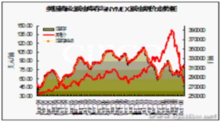 美國商業(yè)原油庫存與NYMEX原油期價(jià)走勢(shì)圖。(資料來源:EIA 北京中期)