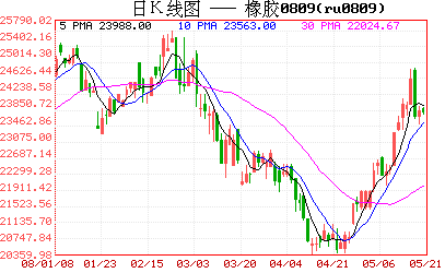 上海期貨交易所公布的橡膠庫存周報顯示,截至5月16日,橡膠庫存為35260噸,較上周減少3765噸。由于海南、云南兩大天然橡膠產區割膠期推遲,近來市場庫存下降明顯。目前,兩大產區的庫存水平大大降低,上海期貨交易所橡膠庫存連續回落,并降至2007年來的最低水平,庫存的降低為膠價提供支撐。