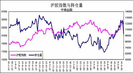 進入4月由于現貨市場供應緊俏,投資者逐漸看多膠價,持倉量也從低于6.5萬張的持倉增加至5月15日的12.8萬張,漲幅高達96.9%。但由于連日來期價的大幅上漲,不免令部分投資者有高處不勝寒之感,亦在周末來臨時出現了大量平倉。
