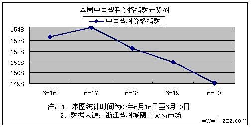 國際原油大幅震蕩,高位盤整,本周倉單市場行情整理回落,幅度較大,至周末,中國塑料價格指數大幅走低,震蕩回落。截止周五15時,中塑指數報收于1498.58點,較上周末下跌57.57點。累計總成交量為5716批,同比上周末增加996批;訂貨量為3419批,較上周末減少211批。