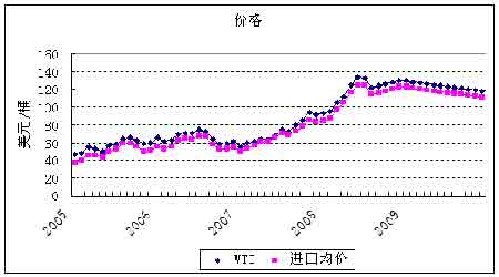 出于對部分重要原油輸出國的供應緊張擔憂,WTI原油價格從6月4日的122美元上漲到7月3日的145美元,但在8月5日時迅速回落到每桶120美元,EIA也在7月的基礎上調整了對08、09年油價的預測,新的均價分別是119和124美元。油價的下跌也影響到汽油和柴油的價格,汽油零售價也由7月14日最高的4.11美元/加侖下跌到8月11日的3.81,柴油則下跌了41美分至4.35美元。EIA預測汽油和柴油的價格08年的均價預計為3.65和4.18美元,09年將達到3.82和4.27。