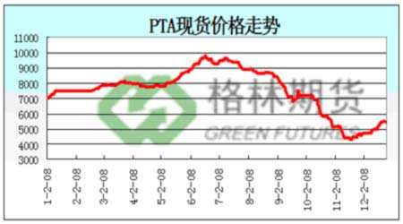 PTA現(xiàn)貨價(jià)格走勢(shì)圖。(來(lái)源:格林期貨)