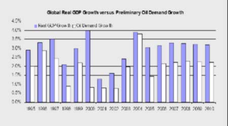 圖3-1、世界經(jīng)濟(jì)與全球原油需求增長(zhǎng)率對(duì)比