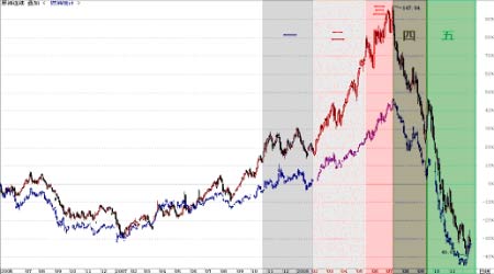 2008年是不平凡的一年,是牛市盛宴向熊市饕餮演變極致的一年。國際原油以及國內(nèi)燃料油在這一年的走勢可謂驚心動魄。我們把這一演變過程劃分為五個階段。