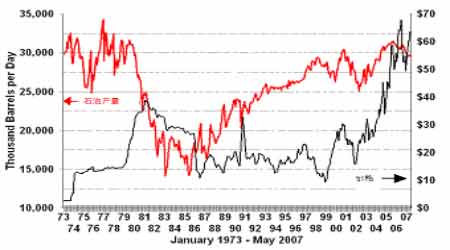 非OPEC產(chǎn)能產(chǎn)量走勢圖。(資料來源:EIA short-term Outlook July 2008,wtrg)