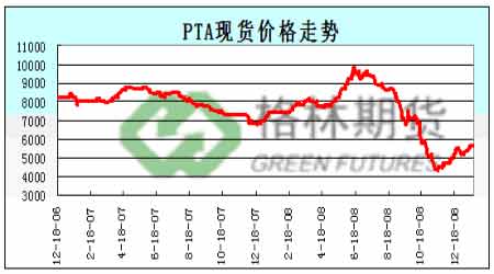 PTA現貨價格走勢圖。(來源:格林期貨)