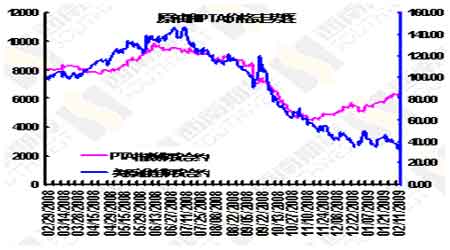 原油和PTA價格走勢圖。(來源:西南期貨)