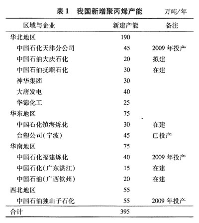 在西北區域,中國石油獨山子石化新上產能為55萬噸/年的聚丙烯裝置將于2009年投產。