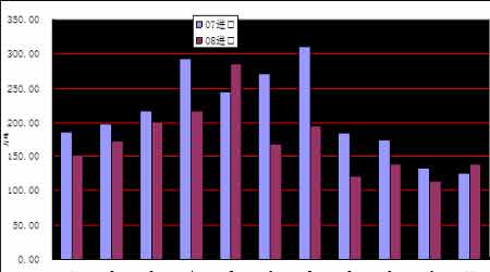 主要原因有三點。首先,從04年來國內消費出現下降趨勢。從圖十八可以看出,自98年以來國內燃料油消費量逐年遞增,04年達到4500萬噸的高點后呈現下降趨勢。從月度進口量來看,每年4到7月是國內進口高峰,主要受夏季電廠需求旺盛影響。今年夏季由于價格高昂,進口量同比出現大幅下降,08年整年繼續呈現消費下滑趨勢。