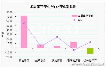本周庫存變化與MA5變化對比圖。(來源:北京中期)