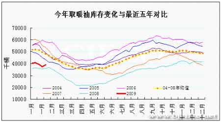 今年取暖油庫存變化與近五年對(duì)比圖。(來源:北京中期)