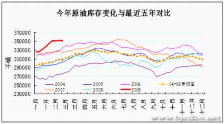 今年戰略原油庫存變化與近五年對比圖。(來源:北京中期)