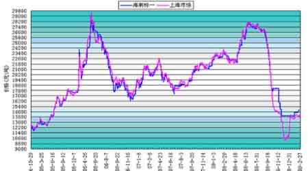 圖為天然橡膠國(guó)標(biāo)一號(hào)產(chǎn)銷(xiāo)區(qū)價(jià)格走勢(shì)對(duì)比圖。(圖片來(lái)源:大陸期貨)