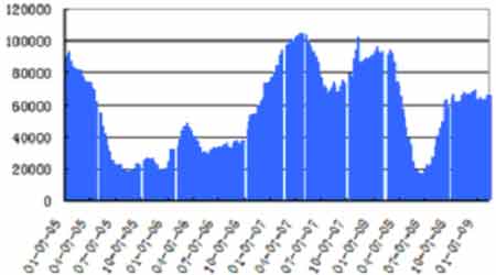 日本橡膠貿(mào)易協(xié)會(huì)(Rubber Trade Association of Japan)公布的最新數(shù)據(jù)顯示,截至2月10日日本天然橡膠庫(kù)存為10,304噸,較1月31日止的庫(kù)存增加2.4%。 根據(jù)該協(xié)會(huì)的數(shù)據(jù),2月10日止日本天然橡膠庫(kù)存較2008年同期水準(zhǔn)下降近5.2%,但已較10月10日觸及的 4,004噸的歷史低點(diǎn)大幅上升。 庫(kù)存上升部分反映出市場(chǎng)對(duì)橡膠需求的疲軟,因主要汽車(chē)生產(chǎn)商削減產(chǎn)量。