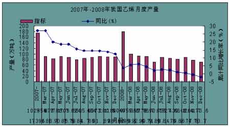 由2007-2008兩年我國月度乙烯生產狀況來看,每年第一季度是乙烯產量增長較快的時間。2007年第一季度乙烯產量增長在20%以上,而在2008年產量增幅縮減的情況下,第一季度增幅仍為全年最高水平。而每年3月份也是乙烯產量較高的月份,2007年3月產量為90.7萬噸,為年內第3高值;2008年3月產量達到99.6萬噸。由此可見3月份是乙烯產能集中釋放的關鍵階段,09年雖然時逢金融危機,國內需求急速下降,但是總體來看料仍將延續這種規律。這無疑將對LLDPE現貨價格造成極大壓力,阻止其價格進一步反彈。