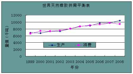 2008年各個主要產膠國天然橡膠產量漲跌不一。馬來西亞和印度產量有所下降,但第一大產膠國泰國產量較去年有所回升,依然維持300萬噸以上的高位。而印尼橡膠產量繼續大幅增長。幾乎達到300萬噸,與泰國持平。印尼天然橡膠的增長將對世界天然橡膠生產格局產生很大改變。同時,由于印尼2008年產量創出歷史新高,因此更加增加了世界天然橡膠市場的供給壓力。而天然橡膠受到橡膠樹自然生長的影響,一旦成熟難以停止割取膠水。因此印尼橡膠產量增長在近幾年內應該處于剛性狀態。而且,印尼橡膠產業多以小種植園為主,橡膠生產成本很低,價格難以統一管理。天然橡膠供給將比較充裕。