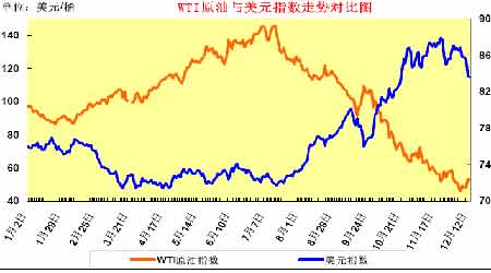 圖表3: WTI 原油與美元指數走勢對比圖(2008 年)