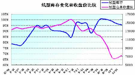 圖為線型庫存變化和收盤價比較走勢圖。(圖片來源:金銀島網交所)