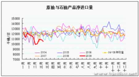原油與石油產品凈進口量走勢圖。(來源:北京中期)
