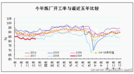 今年煉廠開工率與近五年對比圖。(來源:北京中期)