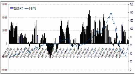 圖為基金凈頭寸與原油價格走勢圖。(圖片來源:國泰君安期貨)